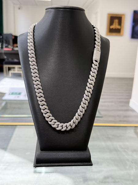 12mm Miami Cuban Link Chain, 22” – Crafted in silver and iced with moissanite.